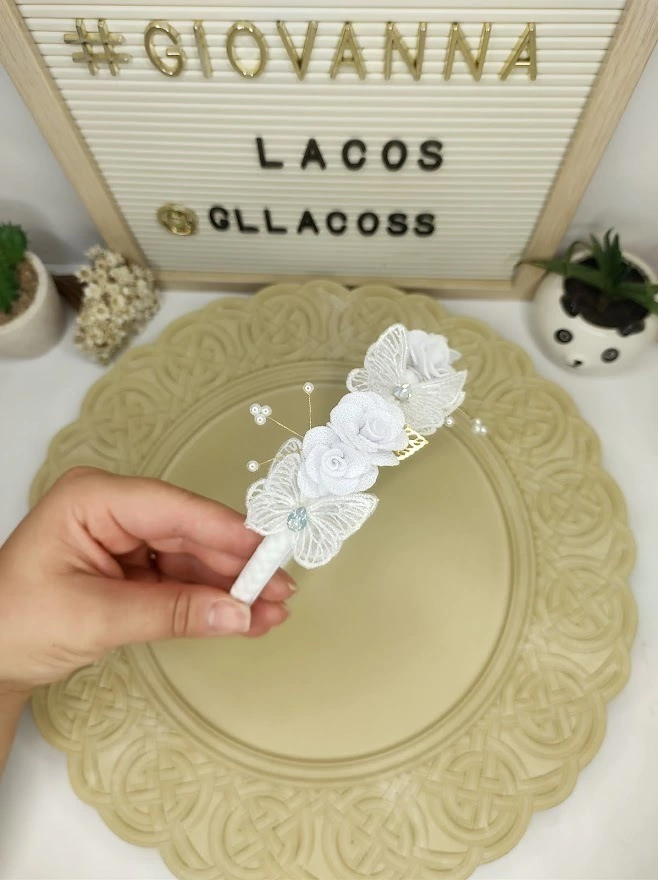 Apresentamos a delicada Faixinha Camélia com Borboleta e Pérolas da Giovanna Lemos Acessórios, um acessório encantador que traz um toque de sofisticação e charme para meninas e recém-nascidos!